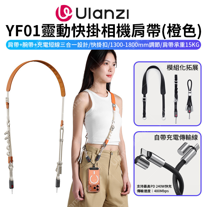 【Ulanzi YF01 小Y靈動快掛相機肩帶】橙色 多功能背帶 手腕繩/背帶/充電線