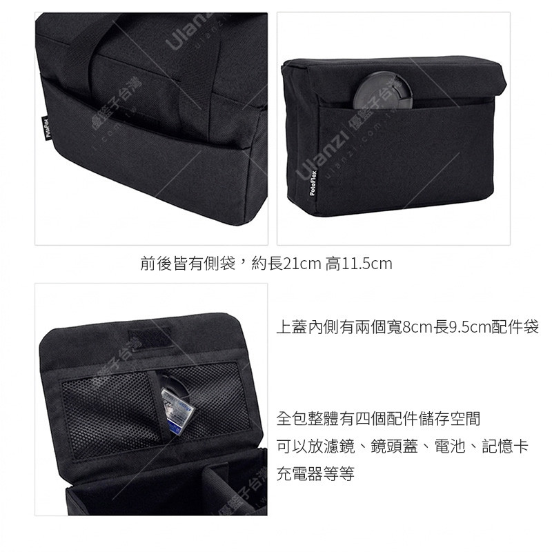 前後皆有側袋,上蓋內側也有兩個小口袋,可以有效收納各種配件