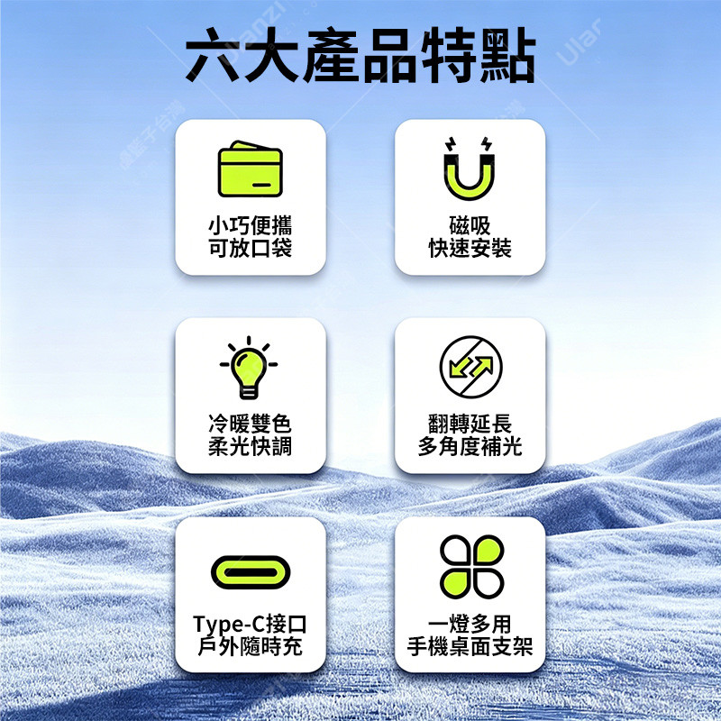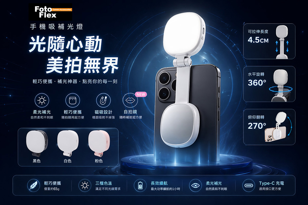 | 商品標準配備包含 | K04 磁吸自拍鏡補光燈*1 引磁片*1 充電線*1 說明書*1 |
