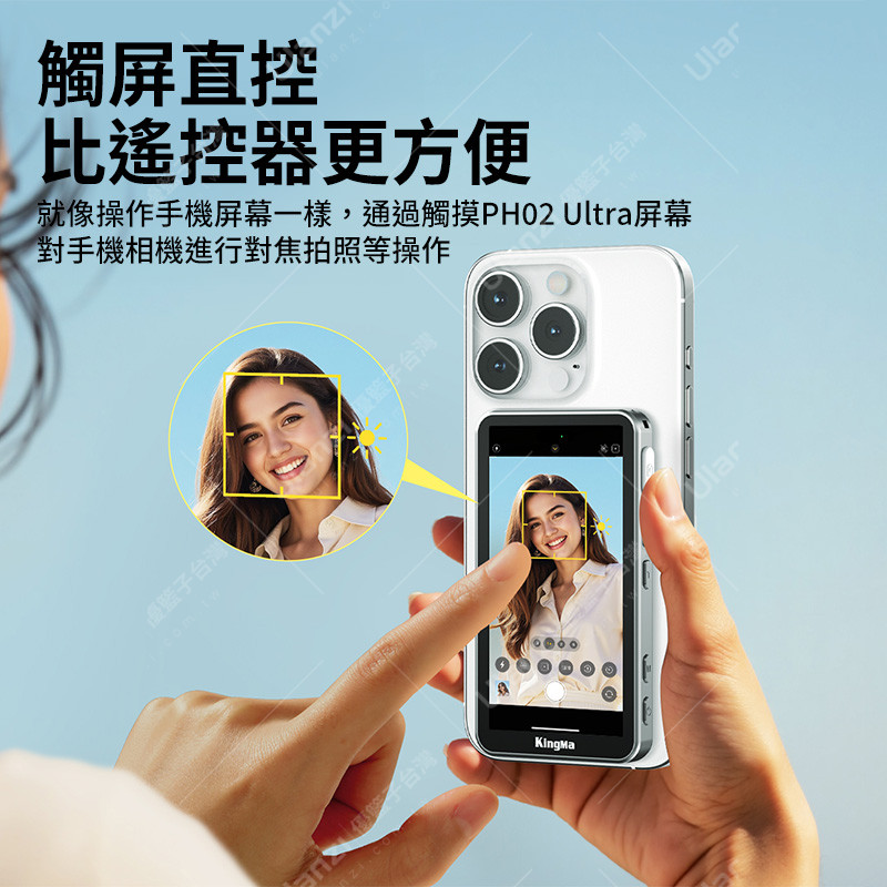 2025新款【Kingma PH02 Ultra 磁吸手機後置鏡頭自拍神器(蘋果手機專用)】白/灰/紫 1150mAh 4吋螢幕 Magsafe磁吸*送磁引片 iPhone17 16 15