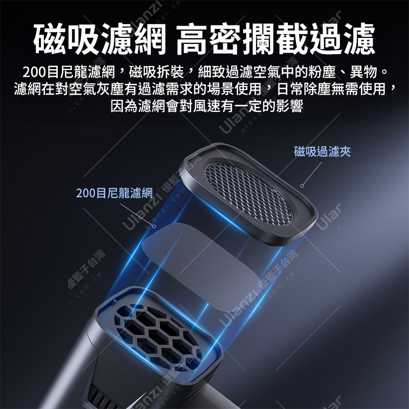 200目尼龍濾網,磁吸拆裝,細致過濾空氣中的粉塵、異物。濾網在對空氣灰塵有過濾需求的場景使用,日常除塵無需使用,因為濾網會對風速有一定的影響