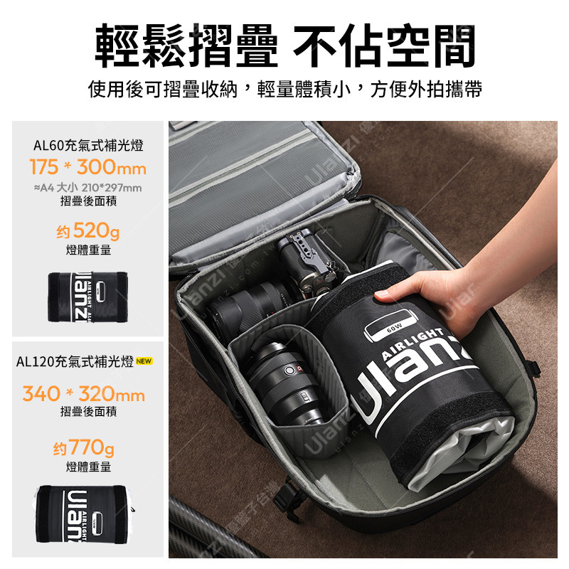 使用後可摺疊收納,輕量體積小,方便外拍攜帶