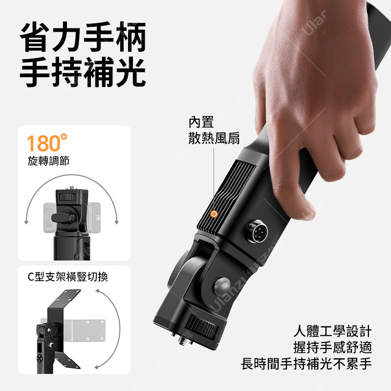 人體工學設計,握持手感舒適,長時間手持補光不累手