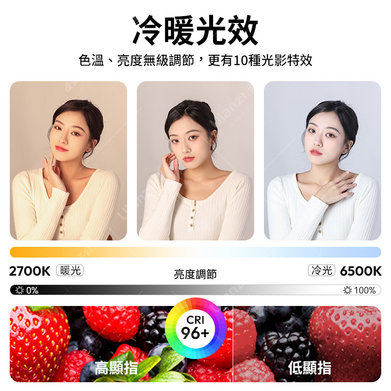 色溫、亮度無級調節,更有10種光影特效