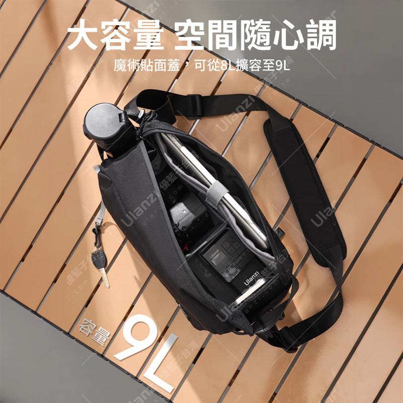 魔術貼面蓋,可從8L擴容至9L,可拆卸魔術貼隔板,按需自由調整包內空間,佈局由你來定