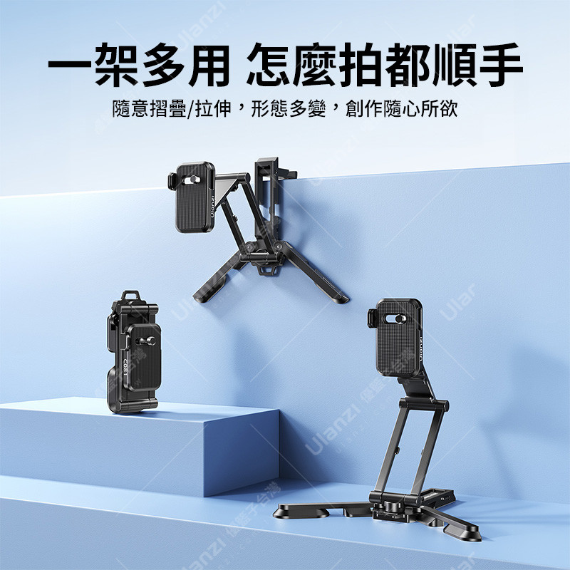| 規格材質 | 品牌:Ulanzi 型號:CO81 主要材質:鋁合金 收納尺寸:96*38*32.5mm 展開高度:216mm 產品淨重:約118g 產品毛重:約140g 設備承重:≤800g *以上參數為Ulanzi實驗室測試,僅供參考,如有變更,恕不另行通知 |