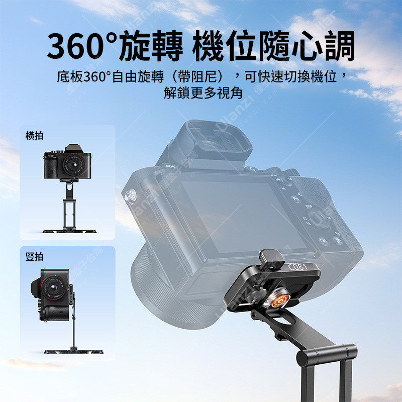 底板360°自由旋轉(帶阻尼),可快速切換機位,解鎖更多視角