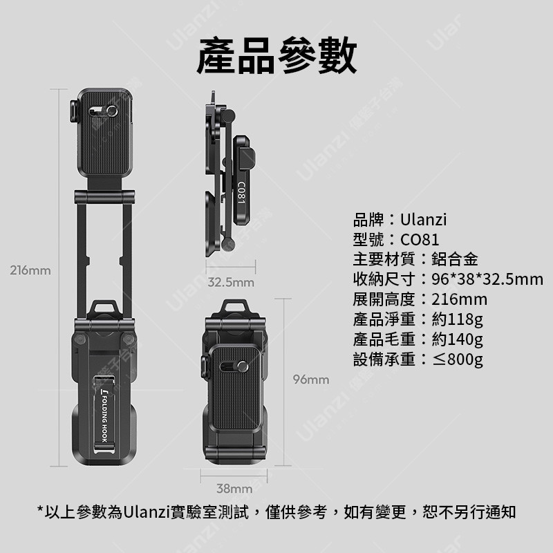 *以上參數為Ulanzi實驗室測試,僅供參考,如有變更,恕不另行通知