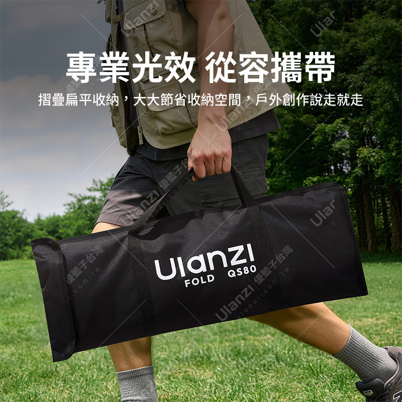 | 規格材質 | 品牌:Ulanzi 型號:FOLD QS80 材質:彈絲反光布 淨重:0.65kg 毛重:1.2kg 包裝尺寸:65.5*15.5*3cm 展開尺寸:80*37cm 收納袋尺寸:80*25cm 卡口類型:標準保榮卡口 *以上參數為Ulanzi實驗室測試資料,僅供參考 |