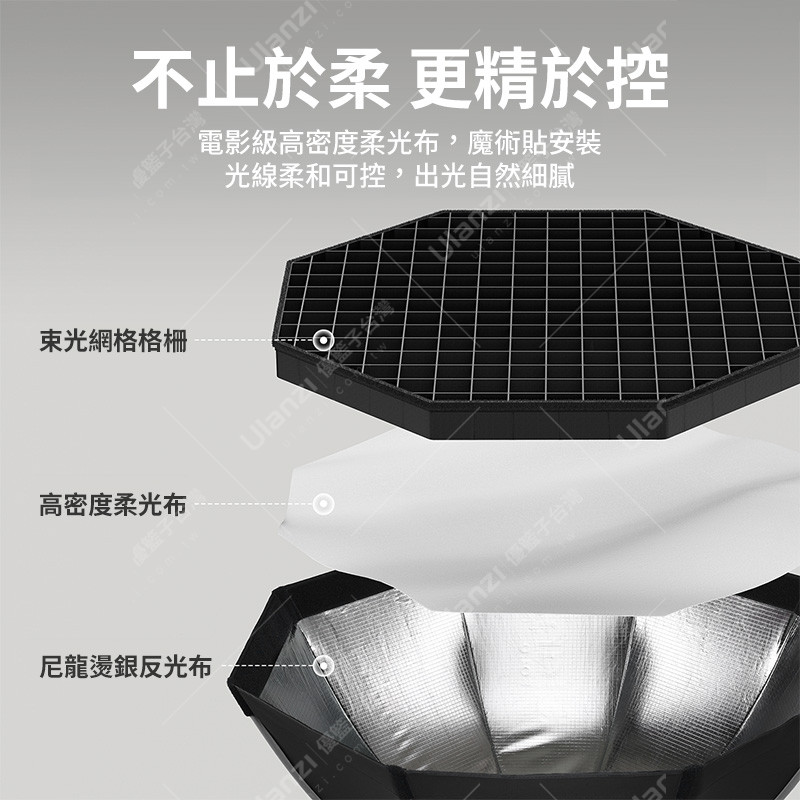 | 商品標準配備包含 | 八角柔光箱*1 柔光布*1 格柵*1 收納袋*1 說明卡片*1 |
