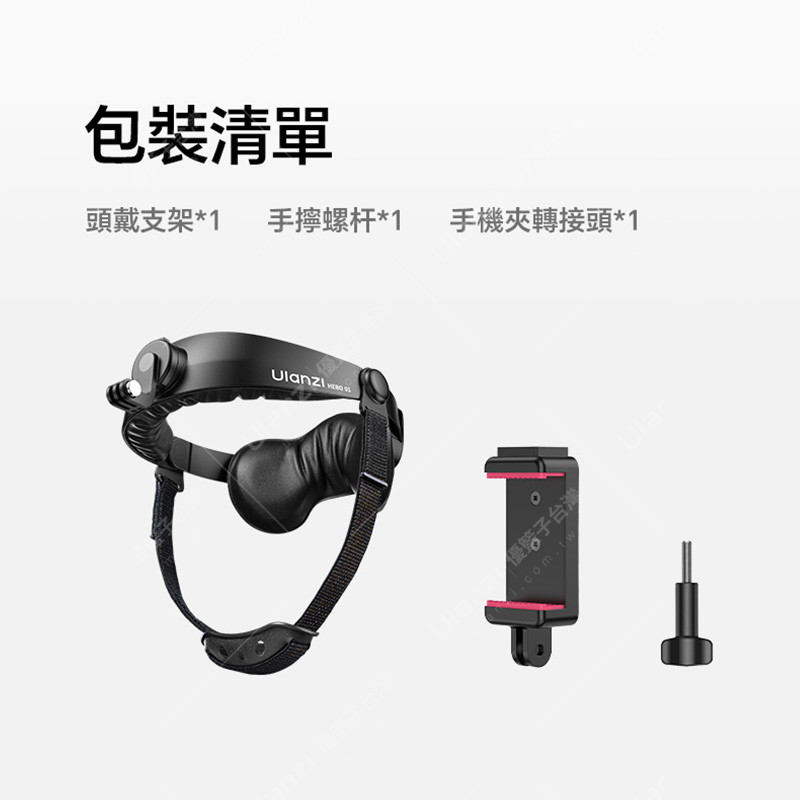 | 商品標準配備包含 | 頭戴支架*1 手擰螺桿*1 手機夾轉接頭*1 |