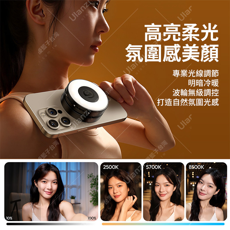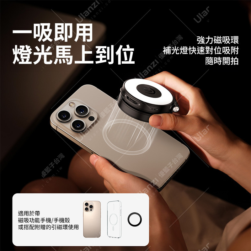 強力磁吸環,補光燈快速對位吸附,隨時開拍