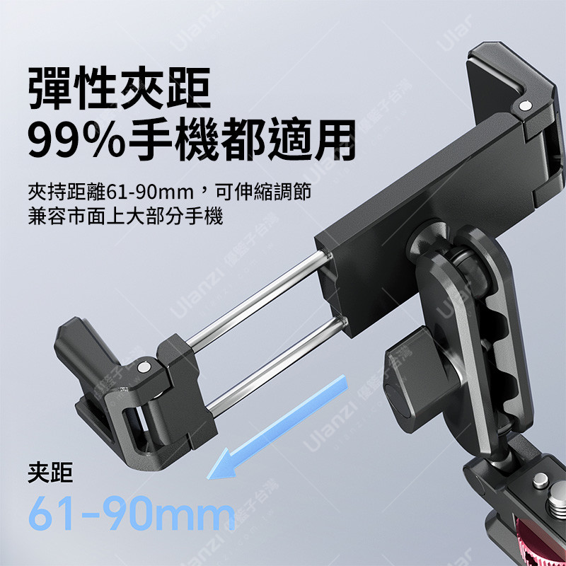 夾持距離61-90mm,可伸縮調節,兼容市面上大部分手機