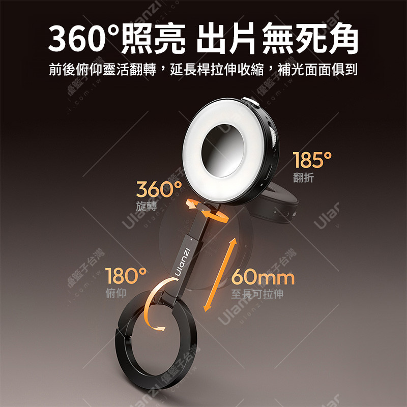 前後俯仰靈活翻轉,延長桿拉伸收縮,補光面面俱到