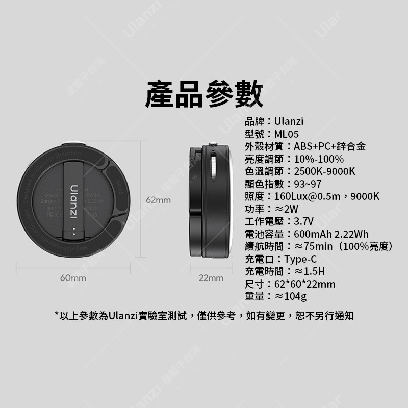 *以上引數為Ulanzi實驗室測試資料,僅供參考,如有變更恕不另行通知