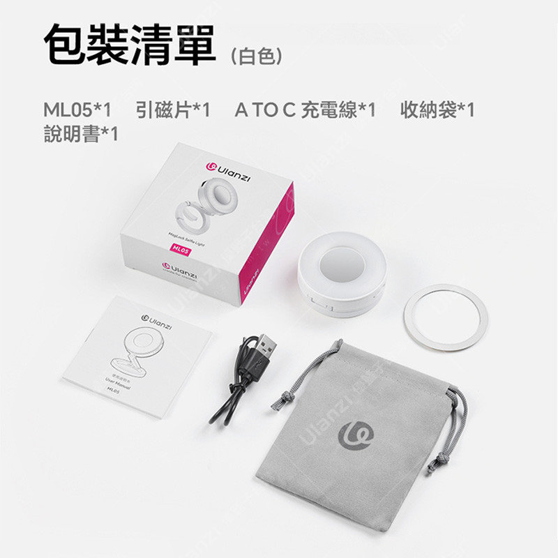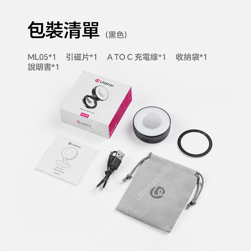 | 商品標準配備包含 | ML05*1 引磁片*1 A TO C 充電線*1 收納袋*1 說明書*1 |