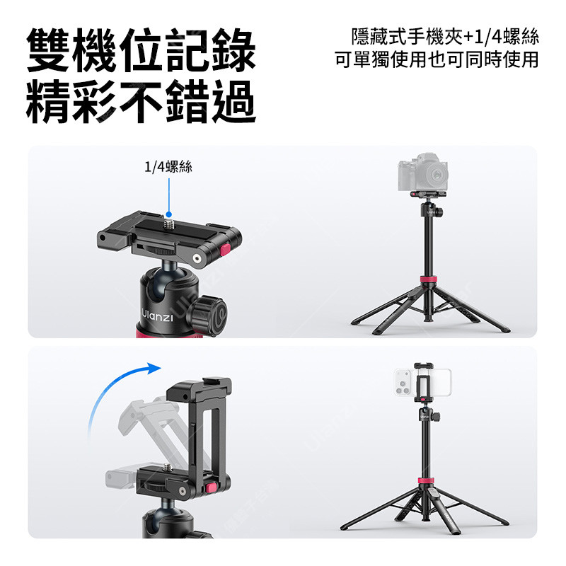 隱藏式手機夾 1/4螺絲,可單獨使用也可同時使用