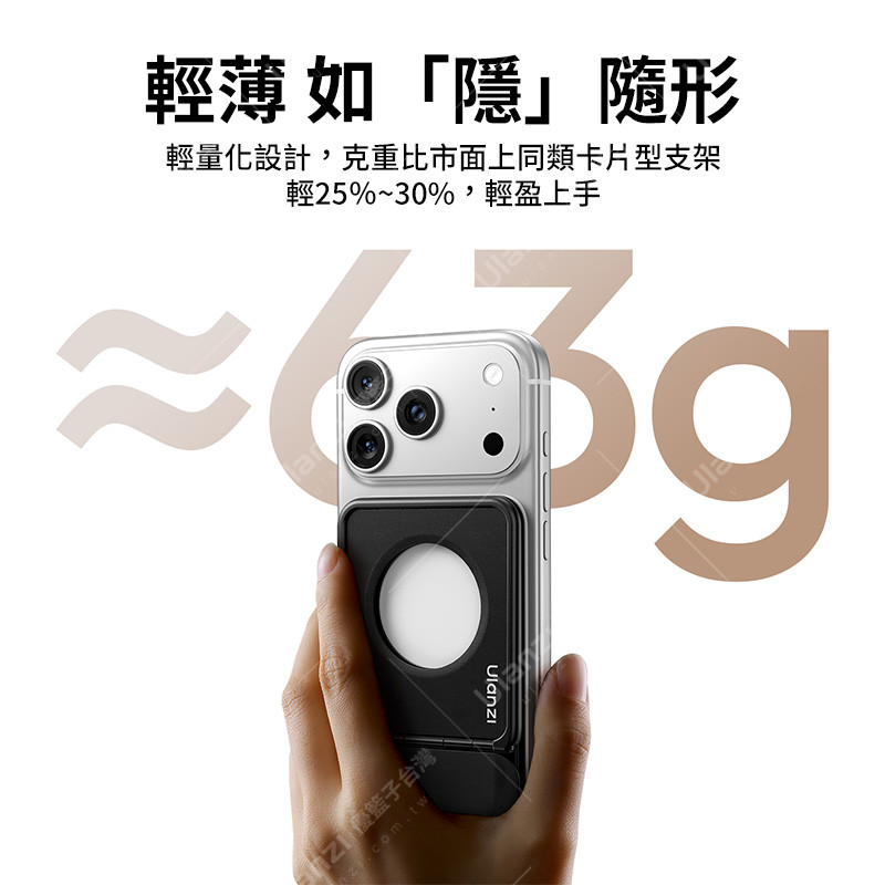 輕量化設計,克重比市面上同類卡片型支架輕25%~30%,輕盈上手