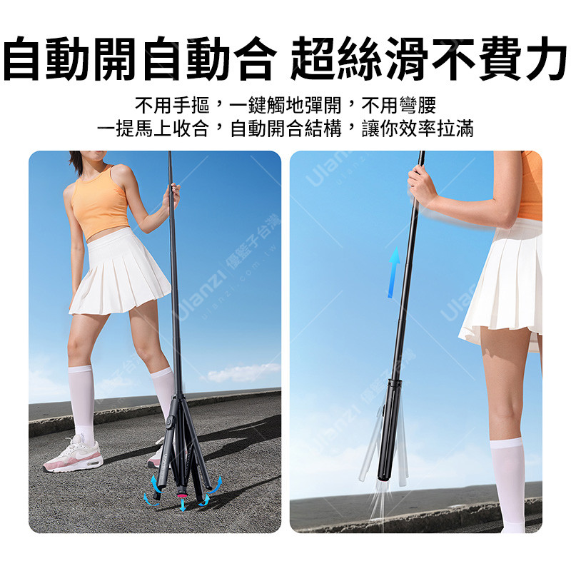 不用手摳,一鍵觸地彈開,不用彎腰,一提馬上收合,自動開合結構,讓你效率拉滿