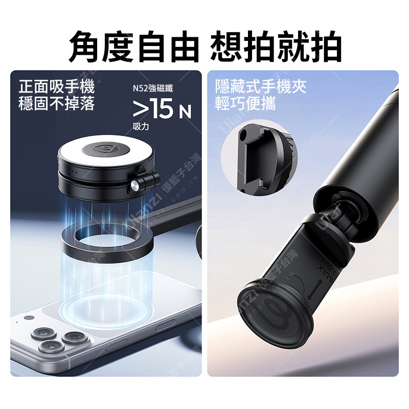正面吸手機,穩固不掉落,背面吸配件,拍攝更出片