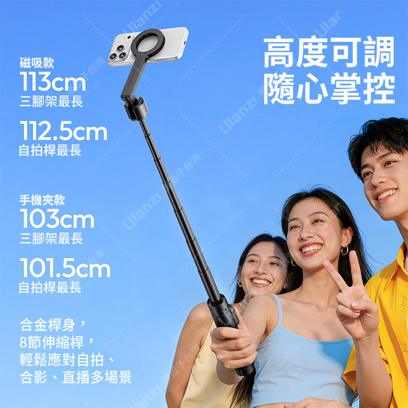 合金桿身,8節伸縮桿,輕鬆應對自拍、合影、直播多場景