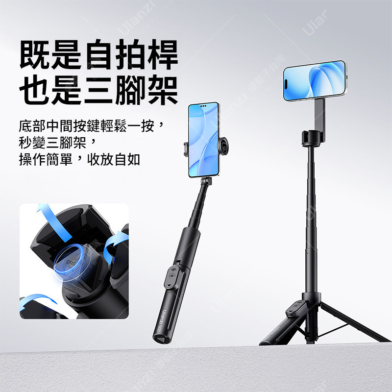 底部中間按鍵輕鬆一按,秒變三腳架,操作簡單,收放自如