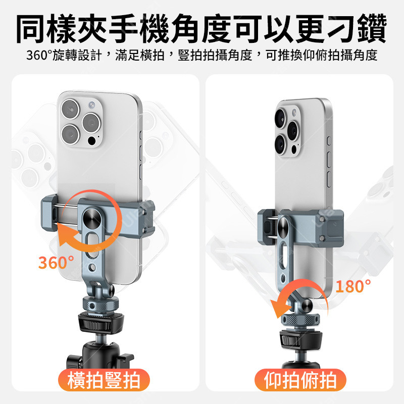 360°旋轉設計,滿足橫拍,豎拍拍攝角度,可推換仰俯拍攝角度